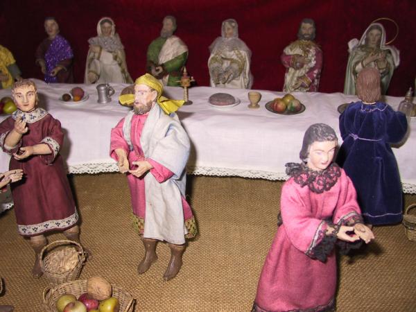 Die alte Liturgie gedachte am Fest der Erscheinung des Herrn auch der Hochzeit zu Kana; deshalb gehört dieses Szene zu vielen alten Krippen, so auch zu dieser. Es ist eine große Festszene mit einer U-förmigen Festtafel, umgeben von zahlreichen Festgästen, zu denen auch Jesus, seine Mutter Maria und seine Jünger gehören. Die Festtafel ist reichlich gedeckt. Auf zahlreichen Platten liegen die Festgerichte: Krebse, gebratene Keulen, Geflügel, Gemüse, Obst, Brot und Kuchen. Im Vordergrund wird die Verwandlung des Wassers in Wein dargestellt. Die sechs steinernen Wasserkrüge stehen da (einer trägt die Aufschrift „Kana“). Jesus erhebt segnend die Hand, umgeben von Speisemeister und einem Diener, mit einer Flasche in der Hand zum Ausschenken.